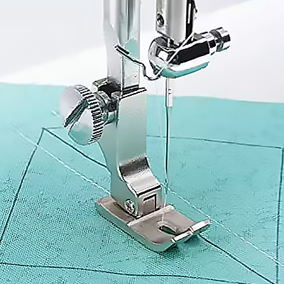 Denna fot är mycket mångsidig eftersom den inte har några guider, allt du behöver göra för att uppnå den 1/4″ är att följa fotens högra sida. Använd den för tunna tyger