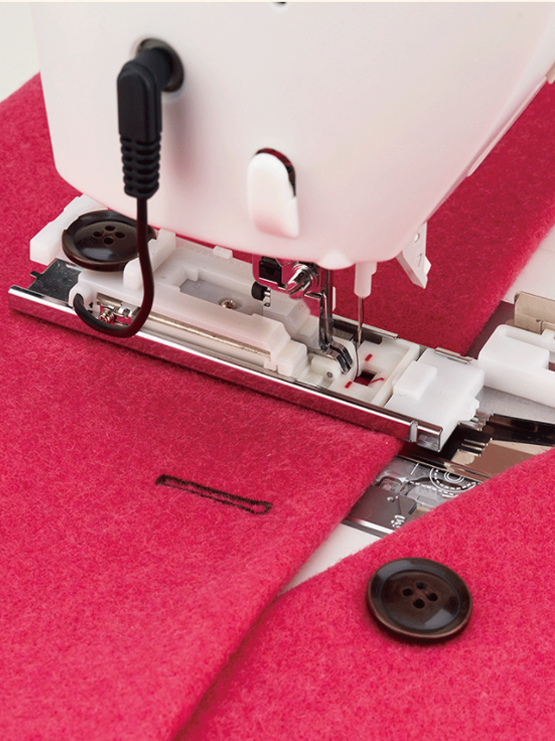 Denna pressarfot används för att automatiskt sy knapphål. Du kan sy knapphål i lämplig storlek genom att helt enkelt placera knappen i pressarfotens knapphållare.