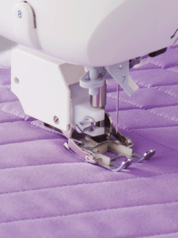Denna pressarfot används för stretchtyger (som stickat), material som är svåra att mata (som vinylbelagt tyg) och ojämnt matat material (som quiltning eller tyg med en tupplur). Denna pressarfot är utrustad med en övre matare som arbetar tillsammans med symaskinens matare för att mata materialet för att förhindra hoppstygn och ojämn matning. Genom att sätta in quiltvärdet kan denna pressarfot användas för att quilta sömmar med lika mellanrum.