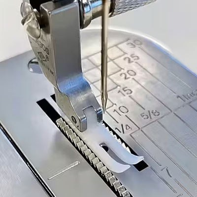 Den här foten är designad för att eliminera drag och rynkningar utan att skada tyget.