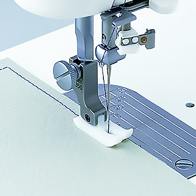 Teflonfoten minskar friktion mellan pressarfot och material Pressarfoten glider enklare på materialet Lämpad för vinyl, skinn, läder, plast
